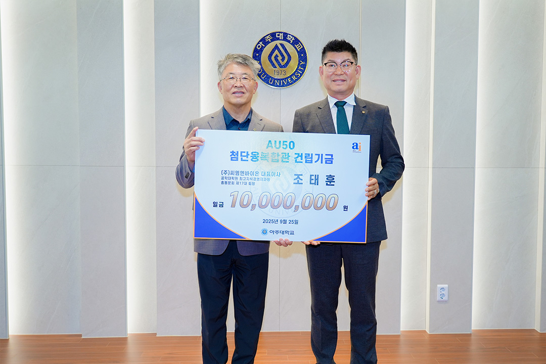 조태훈 기부자는 우리 학교 공학대학원 최고지식경영자과정 총동문회 회장이자 ㈜씨엠엔바이온 대표를 맡고 있다. 이번에 ‘AU50 첨단융복합관 건립기금’으로 1000만원을 전달했다.