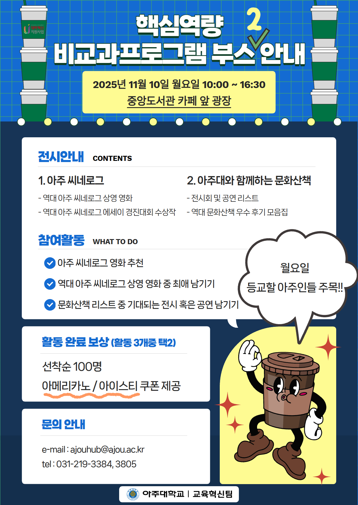 [๋น„๊ต๊ณผ] ๐Ÿ“ข์›”์š”์ผ ์ปคํ”ผ์™€ ํ•จ๊ป˜ ์‹œ์ž‘ํ•™๊ธฐโค๏ธโ€๐Ÿ”ฅํ•ต์‹ฌ์—ญ๋Ÿ‰ ๋น„๊ต๊ณผํ”„๋กœ๊ทธ๋žจ ํ™๋ณด ๋ถ€์Šค ์•ˆ๋‚ดโค๏ธโ€๐Ÿ”ฅ[๊ต์œกํ˜์‹ ํŒ€]