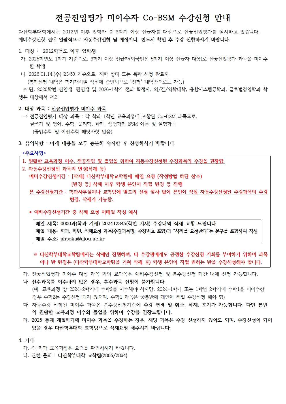 [학사] [다산학부대학]전공진입평가 미이수자 Co-BSM 수강신청 안내