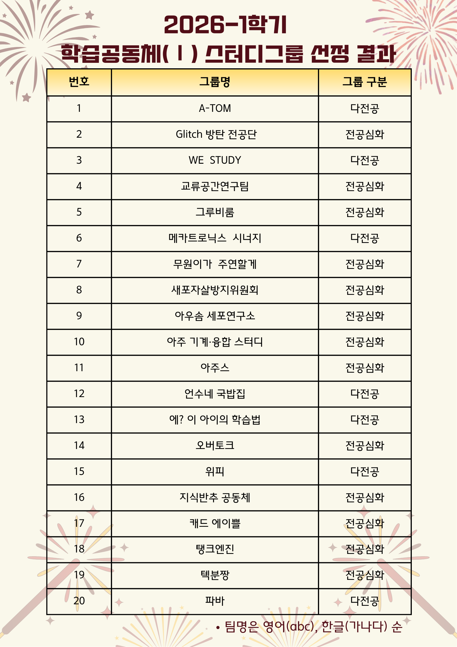 [비교과] [학습법] 2026-1 학기 학습공동체 선정 결과 안내